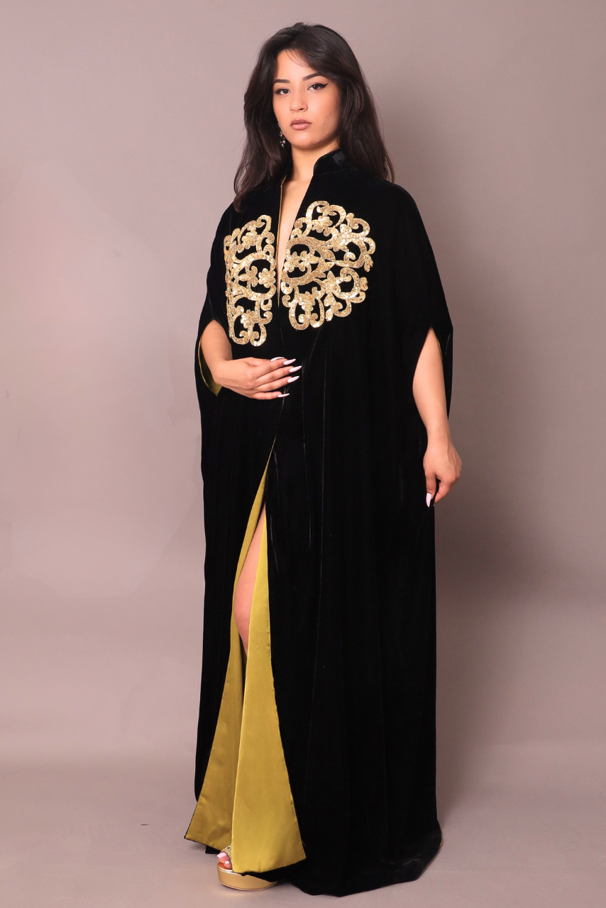 Embroidered jackets crafted with silver thread dipped in gold, with every detail meticulously hand-stitched to perfection. Made from luxurious linen , renowned for their quality and elegance, these jackets give women a refined presence and a sophisticated touch that turns heads. A design that blends heritage and luxury, perfect for connoisseurs who appreciate both art and style in every piece they wear.